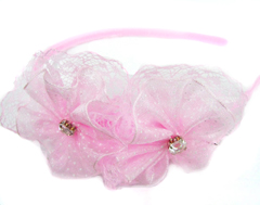 Plastic headband wrapped into fabric with satin flower and diamon
