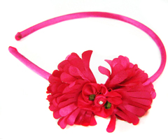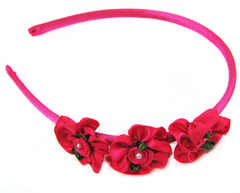 Plastic headband wrapped into fabric with satin flower and diamond